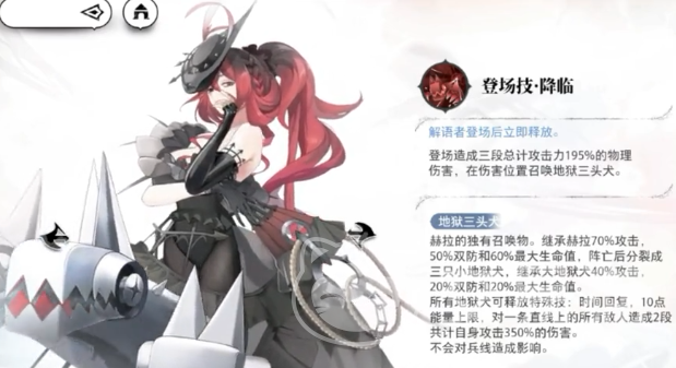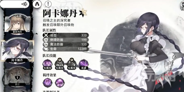 队长就可以选择阿卡娜丹。召唤的羁绊一般都需要5个召唤职业角色才能够解锁,接着玩家可以选择赫拉,这一个角色和队长之间就会有一个技能,联动场上每一个我方的单位全部都可以获取1%的攻击力。我方的召唤单位越多,那么提升的实力也会变得更加出色。召唤的三头犬还会有一个群攻的技能,普通攻击就可以直接降低三头犬的技能cd。
