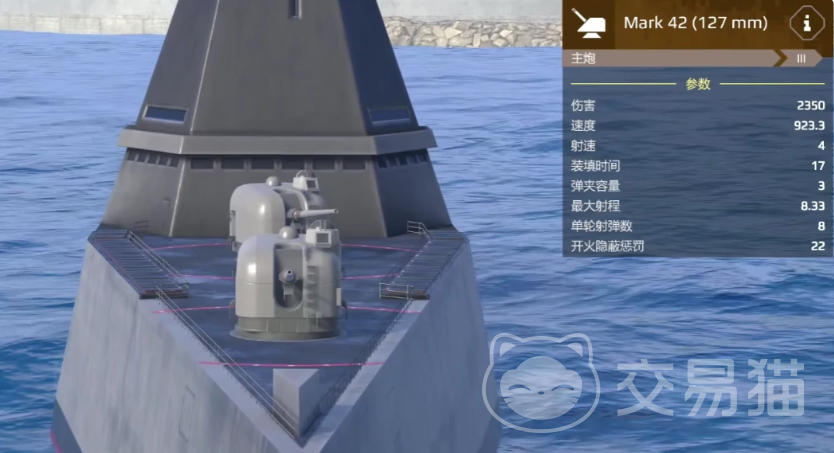 主炮用127的MARK42,再看它的机动性和雷达探测能力,这两项指标均达到了游戏内的顶尖水准,高达32.5节的航速使它在海面上飞驰,而10.4千米的广阔雷达覆盖范围则让它拥有敏锐的战场洞察力,一旦战斗进入白热化阶段,经验丰富的舰长便可充分利用其高机动性施展灵活多变的游走战术,精准打击敌方的核心战舰,逐步瓦解对方的防御体系,不过过高的机动性也使得朱姆沃尔特号在高速行进间极易暴露自身防空薄弱的缺点,此时就需要玩家凭借精湛的操作技巧,进行尾部转向,以规避敌方密集的防空火力。