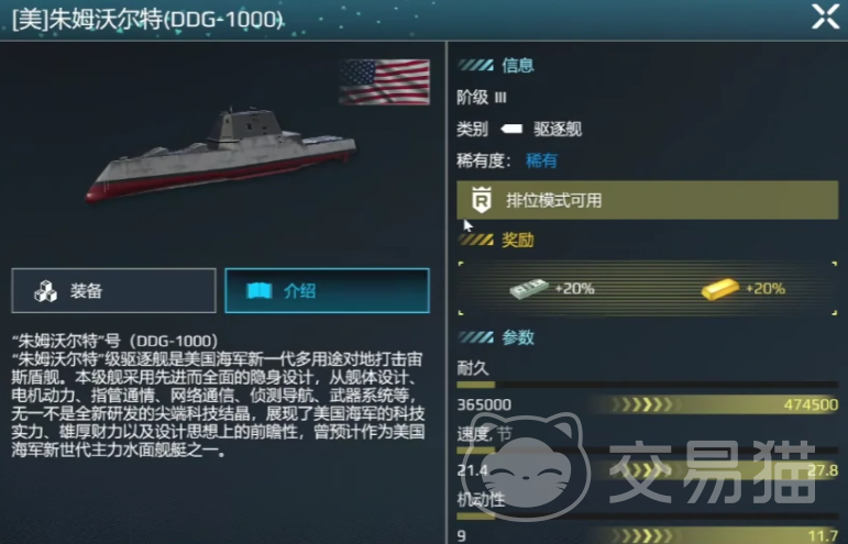 朱姆沃尔特号在游戏中的定位很独特,它是一艘上限极高的T0级驱逐舰,然而其操作门槛对于初出茅庐的新手玩家而言,驾驭它也是很难的,因此并不推荐新手贸然尝试,它的火力系统当中前置炮弹与双主炮的组合爆发伤害在整个游戏中都处于顶尖行列,再搭配上威力强劲的X51导弹,单轮次输出的伤害数值甚至能够飙升至18万,但其独特的后置导弹槽位设计虽赋予了它强大的火力潜力,却也带来了极为不便的操作体验,每次发射导弹时,都需要大幅度调整战舰的整体朝向,而在这段调整的间隙中,一定要防止抢先发动攻击。
