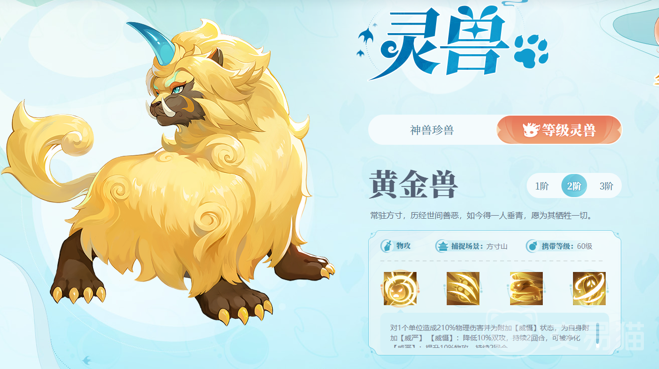 在物理输出神兽中独树一帜,完美融合了高伤害与控制效果。它的"骑手突袭"技能可造成250%的物理伤害,并有10%概率使敌人陷入持续三回合的混乱状态,这种干扰敌方行动的能力在PVP中极具战略价值,当敌人处于混乱状态时,只能进行普通攻击,这在很大程度上削弱了敌方的战斗力,为团队创造了有利的输出环境。因此黄金兽不仅适合PVP战斗,在PVE中清理小怪也同样高效,是团队中不可或缺的多面手 。