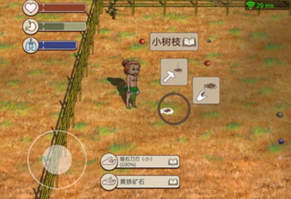 由此可见,黄铁矿石也是特别重要的,具体的获取方式是在地图上先找到灰色的石头,然后通过收集之后,就可以获得黄铁矿石。最后玩家还需要找到枯枝或者是蔓生的树枝交互之后就可以获得柴。柴其实也是必须要找到的,因为它是生火的主要材料之一。另外有才的加入之后,能够让火势变得更加的稳定,并且可以有效的延长燃烧的时间。