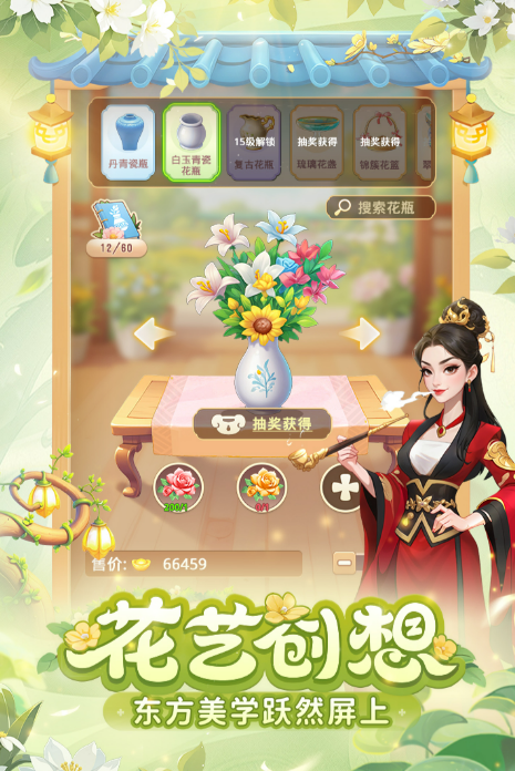 与其他传统模拟经营游戏不同的是,《我的花园世界》将插花艺术和设计理念融入其中。你既是一个种植者,更是一个创作者。在这里,鲜花不仅是你劳作的成果,更是你表达艺术和个性的载体。游戏允许你将收获的鲜花巧妙搭配,制作出各种美丽的插花作品。浪漫的婚礼花束,还是温馨的家庭装饰,甚至是充满春日气息的花篮,每一份作品都能展现出你对美的理解。你还可以将自己的作品展示给朋友们欣赏,让他们也感受到你的创意和心意。