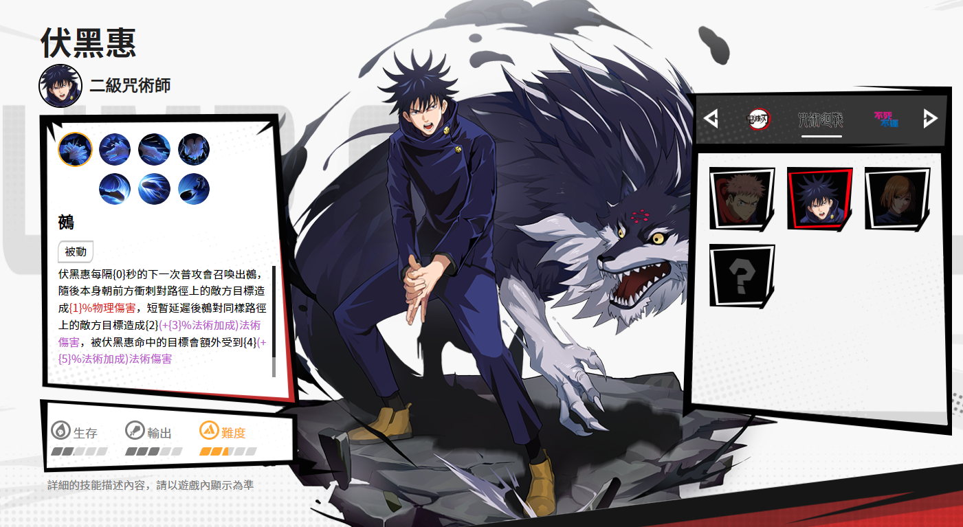 漫画群星大集结伏黑惠好玩吗?伏黑惠,作为咒术回战系列的核心角色之一,在游戏中凭借其独特的式神召唤机制与多变的战术风格,成为游戏中极具深度的战术型角色。本期小编将全面剖析伏黑惠的角色定位、技能特性、操作技巧以及阵容搭配,帮助玩家掌握这位"咒术高专优等生"的战斗精髓,在群星闪耀的战场上发挥其最大潜力。