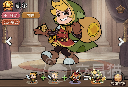 ④辅助:推荐平民玩家玩辅助的原因则是因为开局就有一个神话品质的辅助英雄凯尔,会被系统免费赠送给玩家,虽说初始自带的技能伤害只有80%攻击力加成,但却可以百分百获得两枚银币,这大大加快了你购置其他英雄,促成完全体阵容的速度,同时它的被动还可以和普通英雄盗贼产生联动,场上盗贼越多,则己方获得越多暴击率,相当于直接用廉价的普通英雄盗贼提高了全队的爆发上限。