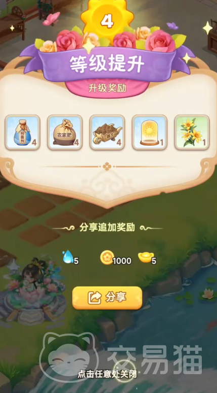 而作为回报,其他好友也会来到玩家的花园进行助力,帮忙处理花园里的日常事务,这样可以提高玩家每日的种植速度,缩短花朵成熟时间,能更快地收取花朵用于售卖。而且好友之间还可以互相共享订单,部分玩家的生意比较火爆,订单数量过多难以独自完成,就会分享一部分订单给好友消耗,那么玩家们就可以接取这部分的订单来获得额外的经济,完成共享订单后还能增加与好友的亲密度,同时还可以加深好友之间的关系。