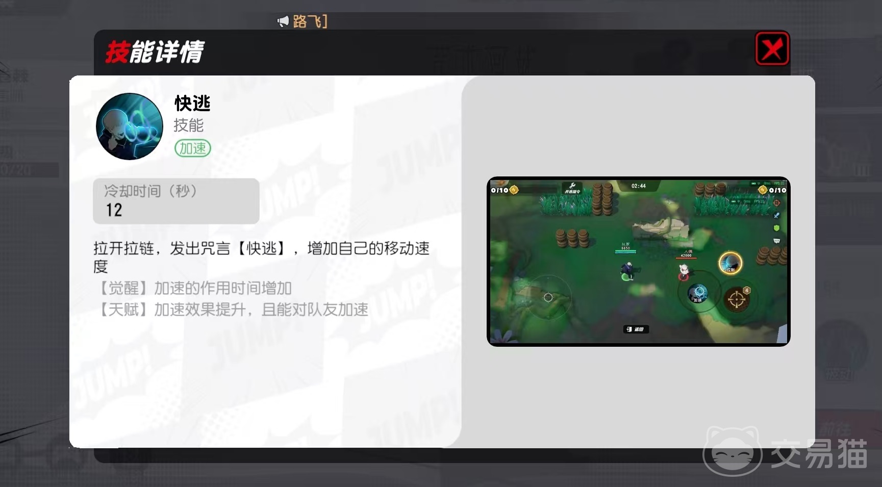 狗卷棘是属于辅助型的角色,在技能方面,普攻可对扇形范围内的目标发出咒言,命中后造成伤害。一技能快逃,属于加速效果,使用之后增加自身的移动速度,觉醒之后加速作用时间增加,天赋效果是加速效果提升可对队友生效。大招效果是对扇形区域的敌方目标造成伤害,并附加一秒钟的定身效果,觉醒之后控制时间增加,天赋效果是大招命中会造成眩晕。