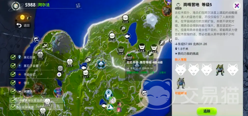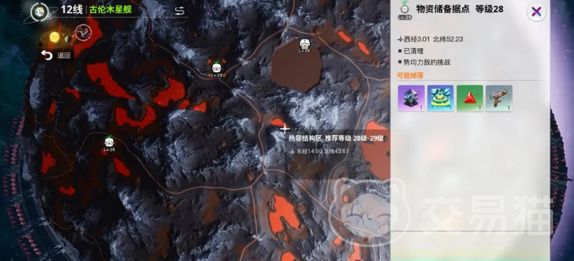 地图上醒目的猪头图标标记着古龙木营地这一重要地点,这里是日常挑战关卡,每个角色每天有多次开启营地宝箱的机会,上限6次,内含丰富的武器装备和其他奖励。成功通关该关卡,不仅可以获得宝贵的充能武器,还能搜集到用于升级装备的材料,且每日限量刷新的机甲BOSS等待着勇敢者的挑战,击败机甲BOSS后,可开启专属宝箱,获取稀有机械零件和顶级装备。