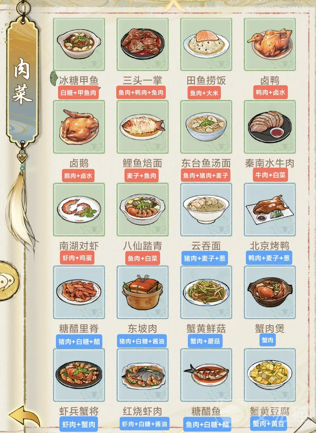 随着游戏进程推进,我们应该关注具有特殊效果的功能性菜谱。比如东坡肉可提升角色的生命上限,适合前排坦克型伙伴,而文思豆腐则能增加暴击率,对输出职业收益大,此时需根据队伍配置精准匹配菜品,若队伍缺乏治疗能力,可选择附带回血效果的海鲜饭,若追求爆发伤害,则多制作增强攻击力的糖醋里脊,通过定向投喂最大化角色潜能,形成互补战斗体系。