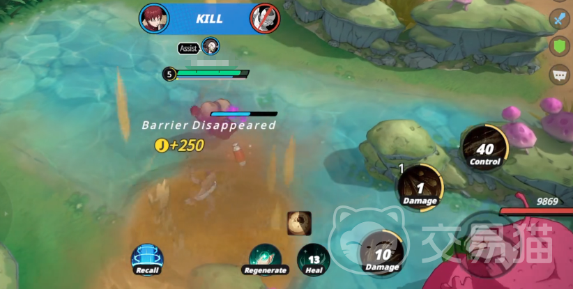 他被动的第二个效果是受到致命攻击后会变得免控,并在五秒内快速恢复血量,但期间无法自由行动,有点类似于其他moba游戏中死后复活的被动,这个被动让我爱罗有了额外的容错空间,可以趁着回血不能移动的时间去打信号呼叫队友支援。
