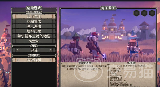 想要加入本地联机操作很简单,只需要把游戏模式直接切换一下,然后就能够操作。游戏的背景其实也很有代入感,在这个神秘的大陆上,因为国王被暗杀,整个大陆全部都会陷入到混乱的阶段。女王就开始召集勇士准备去拯救整个国家,而玩家所扮演的就是这一群勇士。想想也会觉得很有使命感,角色方面是很自由的,有8个可以挑选的职业,还有6张地图可以选择。所有角色的外观都是很有自由度的,玩家可以根据个人的喜好,然后去打造专属的勇士,这一点细节其实比较贴心。