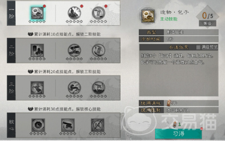 山以战场辅助为特点,可以创造出“包子”来恢复士气,还能使得战斗中的城池擂鼓额外消耗士气,降低敌军行军速度,阴以个人强化为特点,但需要获取到对应道具才能运用,该系的技能比较多样,有复制他人队伍,减少兵法消耗、强化自身队伍实力等。