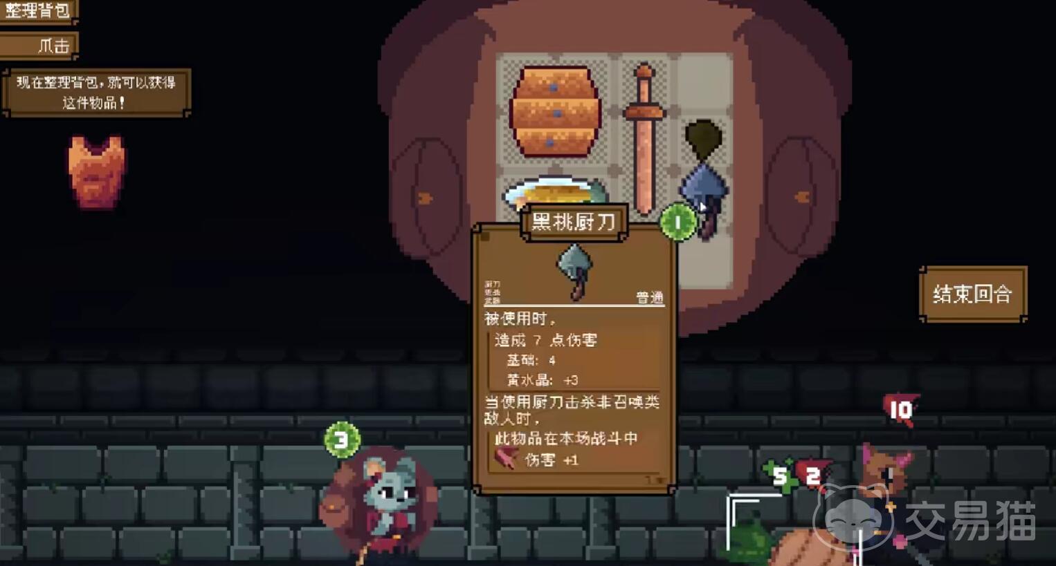 玩家在攻打黑暗中的赤狐时,需要了解赤狐的特点,背包英雄作为一款具备肉鸽元素的游戏,赤狐在黑暗中的闪避跟攻击力都是比较强的。在这样的情况下,玩家如果想要打赤狐的时候,需要合理的运用装备跟策略,在装备方面来看,玩家可以直接选择黑桃厨刀,它作为一件特别普通的武器,在使用的时候却能够造成7点伤害,而它的基础值为4。另外玩家如果能够合理的利用它的时候,还可以累积对应的伤害,这样的话能够快速的将黑赤狐给打败。