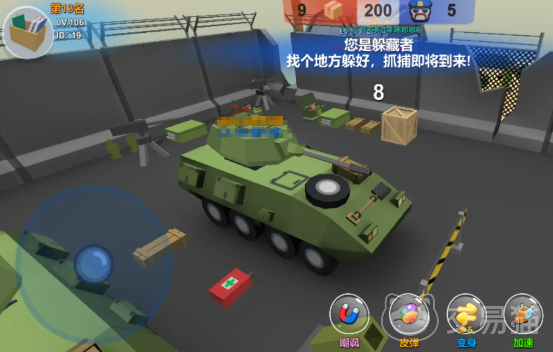当大家变成寻找者(警察),就能加入6人团队,需在200秒内找出所有躲藏者,可使用武器和道具(如炸弹、问号标记)辅助抓捕。要是躲藏者,就可进入18人团队,需伪装成地图中的物品(如杯子、箱子、车辆等),利用皮弹(烟雾弹)和3D声音口哨干扰寻找者,存活到最后即胜利。