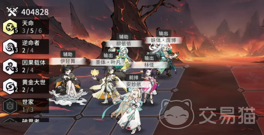 阵容成员如下图所示,这一套激活了天命羁绊,可以在进入战斗时,让我方全体属性提升10%,养成难度低的同时,生存能力比较强,主要依靠叠加灼烧状态来进行持续性的输出;