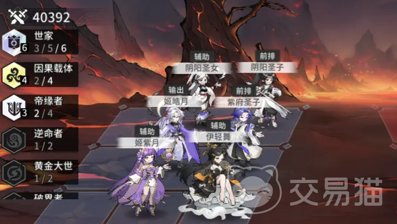 世家阵容成员如下图所示,这一套激活了世家羁绊,能在我方修士获得增益时,让属性提升,该阵容养成会比较困难,3个SR都比较依赖星级,比较适合去打PVP,队伍中技姬皓月是核心输出;