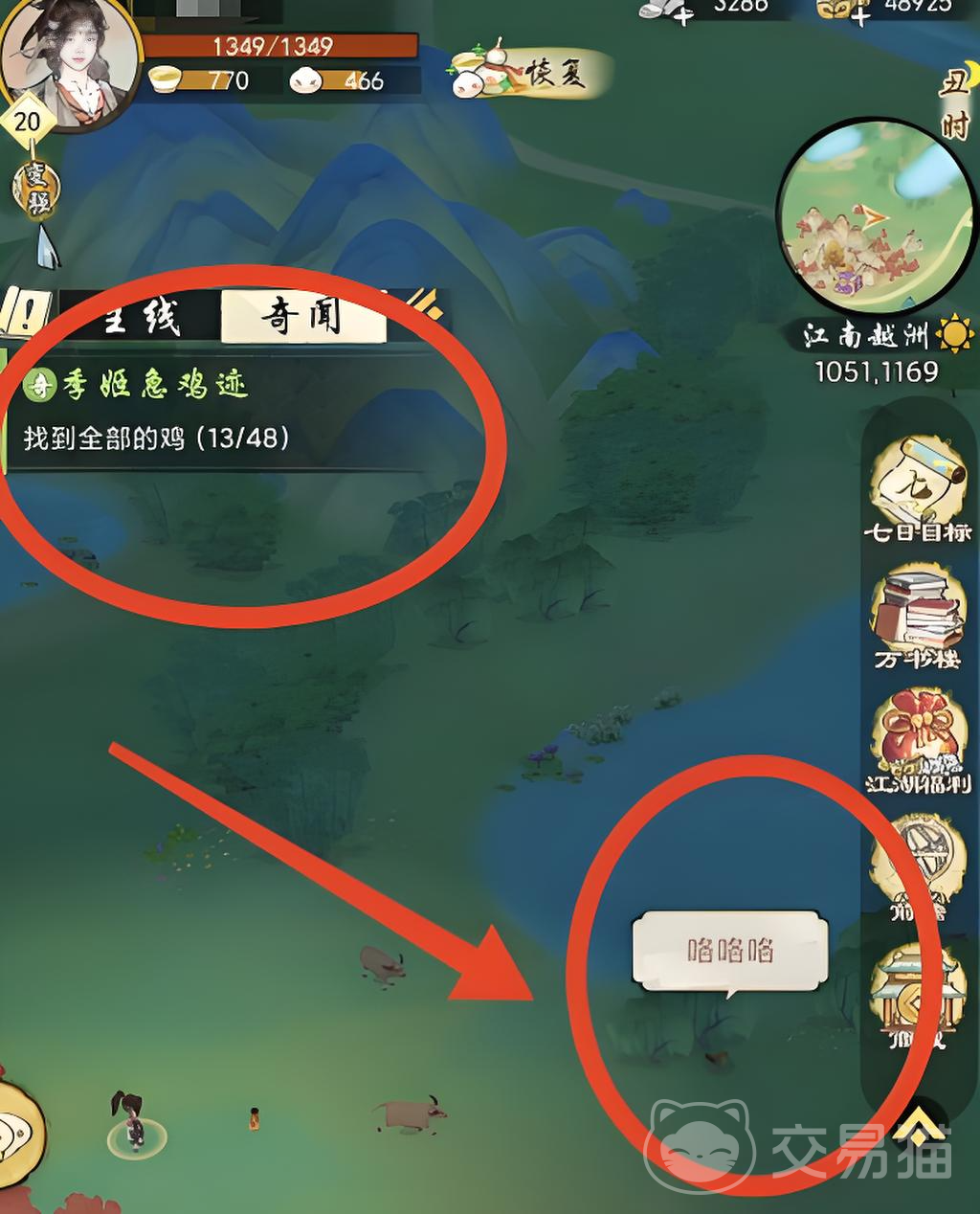 地图上会随机出现头顶带有“咯咯咯”的任务鸡,跟随它们可触发奇遇。部分奇遇需与特定NPC对话后触发,例如季姬任务,需完成“临安城守卫战”主线,并在城内与茶馆老板、驿站信使等NPC对话获取线索,在寅时三刻(游戏内时间)前往城西望月台可触发季姬后续剧情。或者落魄书生,前往杭州城西市集连续对话5次可获得紫色外功《青莲剑歌》。最后去开封府衙后院水井,每日首次调查可获得1枚悟剑丹。