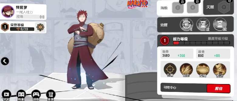 控场角色在游戏中起着至关重要的作用,目前唯一的控场角色就是我爱罗,他的普通攻击可以向指定方向释放流沙冲击波,不仅会对路径上的敌人造成伤害,还会在地上留下一片减速区域,被动技能使他在普攻和技能命中敌人时给对方挂上束缚标记,当标记叠满后即可束缚敌人长达1.5秒,小技能陷进允许他朝指定方向释放大量控沙,这些沙子在接触到敌人后会散开形成一个更大的流沙区域,该技能最多可以储存两次释放机会,大招则是一个大范围的持续向中心牵引的强力招式,能够有效地聚拢敌人并打乱他们的阵型。