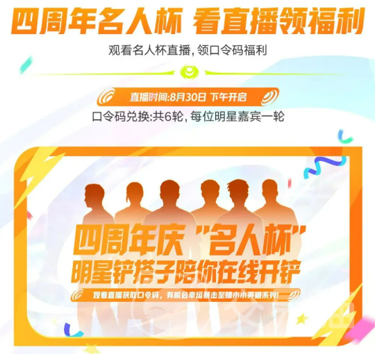 还有一项活动特别适合那些喜欢与大家一起分享快乐的朋友。8月30日,金铲铲之战的四周年“名人杯”直播也将为大家献上一场激动人心的赛事盛宴。观众不仅能通过观看直播获得口令码,每轮口令码对应的奖励也将让你心动不已!至臻小小英雄、香水宝石系列小小英雄等一系列豪华奖励等你来兑换。