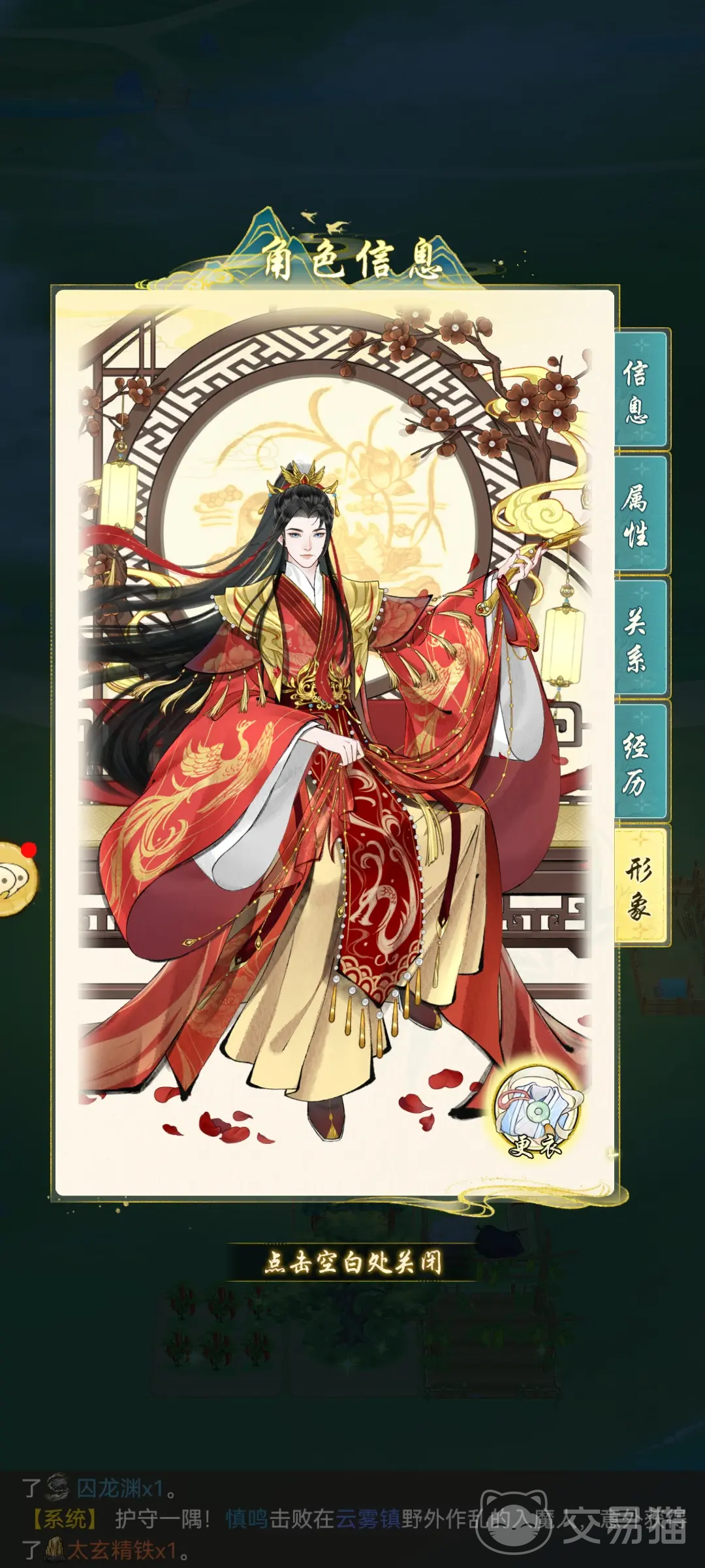 进入该阶段后,可向心仪的任意男性角色多次发起求婚的请求,一段求婚陈功功,就能将关系升级到“未婚夫妻”的状态,此时就表示已经选定击昏对象了,接下来就可以带着伴侣去“姻缘司”,在这里支付1314银两,就能完成婚约,缔结婚姻。此时其他处于情侣关系的角色会被冻结,恋爱线也就无法继续进行了。