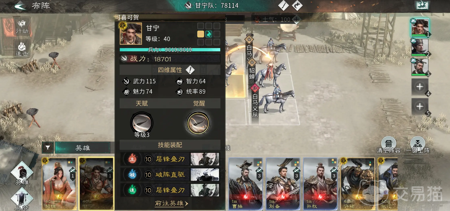 三国天下归心甘宁阵容搭配是很多玩家想要了解的,在这款游戏当中不少的玩家都为了怎么样巧妙的去搭配阵容,感觉很苦恼,别急!!今天小编为大家就带来了关于三国天下归心甘宁阵容搭配的详情,能为玩家排忧解难,还能在乱世当中成就自己的霸业,当然不同的武将玩家在选择的时候也会有所区别,一起来看一看。