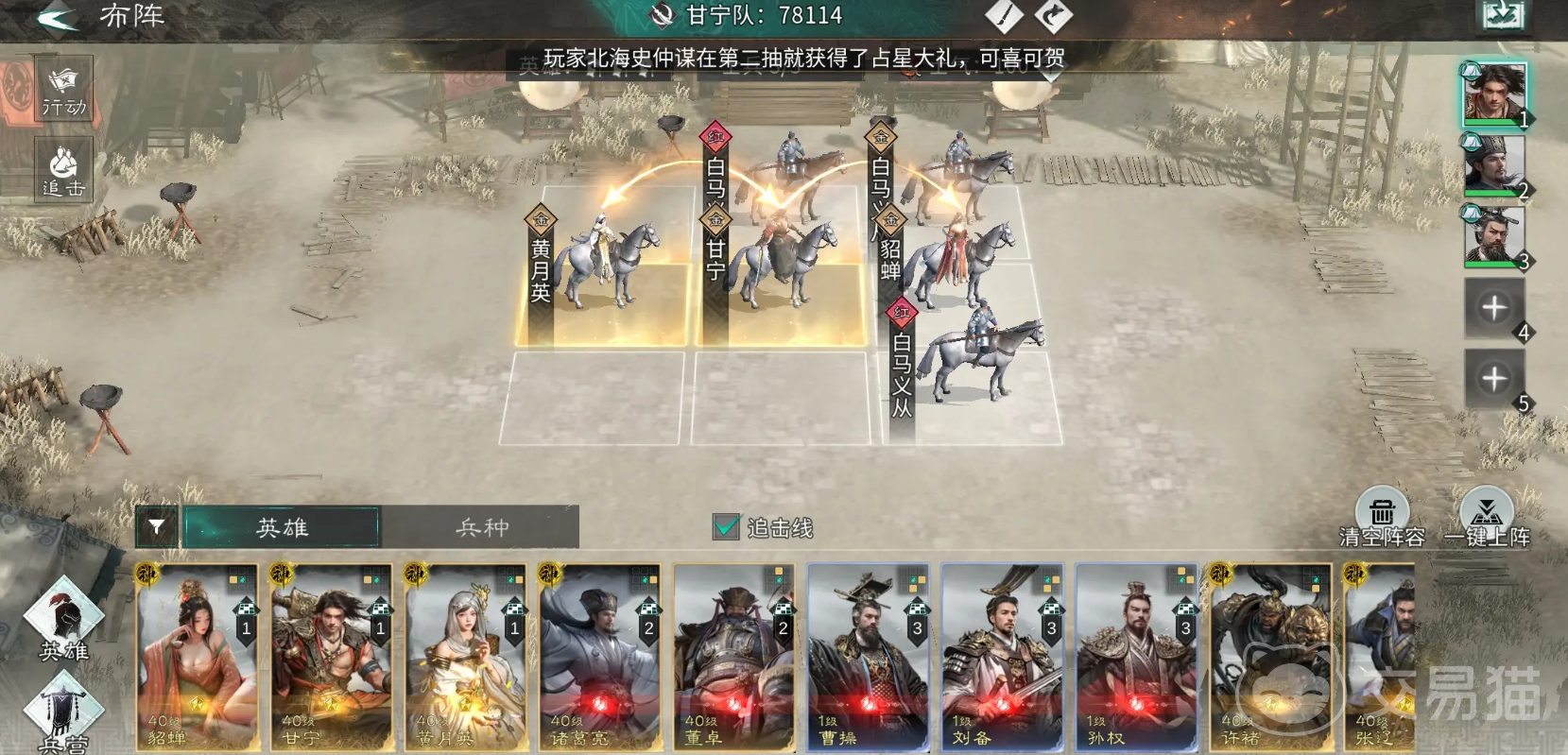 这种全方位的保护能力基本上对于各种阵容的搭配都是很适合的,也是不可多得的一种强力生存的武将类型。关羽在游戏当中本身就是力斩杀机制,出现了成功叠加畏惧状态,能够无视对方的抗拒,还能直接输出。张飞本身就有着一定的伤害能力,还能施加虚弱的效果,技能进一步的降低了我方战斗。当中兵力的损耗在策略上也是精心设计的,要让关于稳稳的踩到张飞以及刘备二位的追击格,这样才能够达到更大利益化。