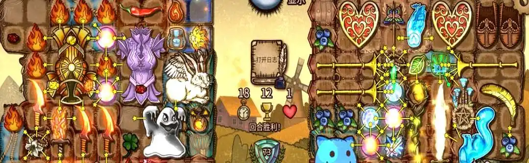 摆放道具时,大家一定要把道具摆放的学问给了解清楚,在这里有400多个不同的道具,其中能够合成的就只有100多个,而且每一种道具在合成时,都有着对应的合成公式,大家一定要把合成公式给记得牢牢的哦,给格子摆放道具时,若是发现道具上出现了星星的话,就意味着道具摆对了,产生的效果就会直接翻倍。