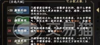 在选择天赋的过程中,大家需要来了解自己的需求,如果是想要来进行热血战斗的朋友们,然后想要在实战中不断的磨练自己,掌握更多的技巧,学习相关的武学招式,那么就可以来选择具备武学,天才以及悟性高的这天赋,对于大家的选择也是非常合适的,并且拥有独特的属性和优势,可以来快速的帮助玩家们更的熟悉,同时掌握好相关的技巧。