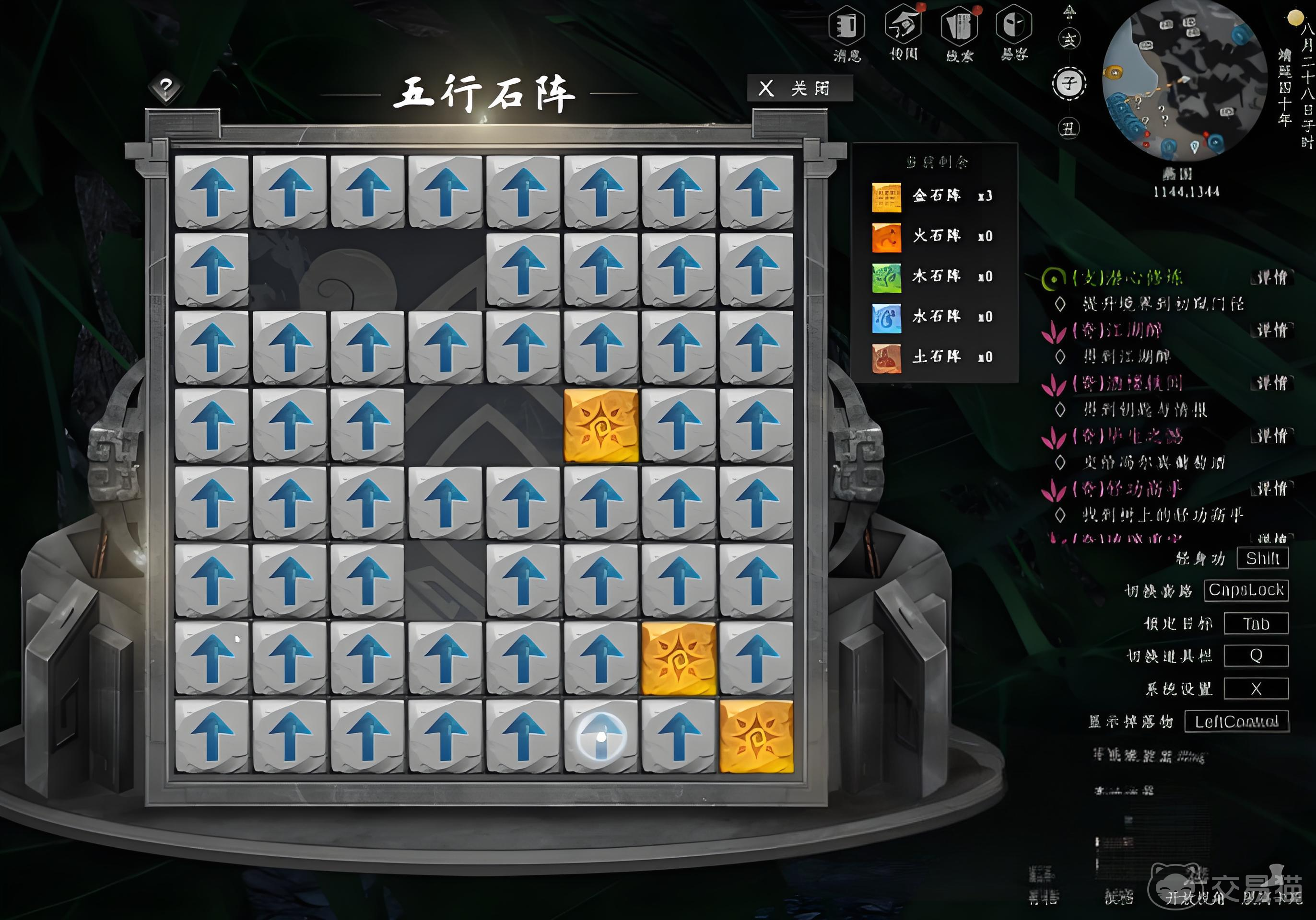 五行石阵的核心元素是以带有不同颜色标志的石块为主,在解五行石阵的时候,玩家除了需要以消除为核心玩法以外,还需要用自己的逻辑能力将相同颜色的标志给回归原位才行。