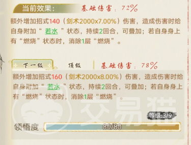 在外功升级方面,有着独特的新策略,对于紫色或橙色品质的外功,将其升至3级是性价比最高的选择,仅需消耗45剑意便能获得9点剑术提升,而对于红色外功,则建议挑选一本击刺类功法并将其精心培养至4-5级,虽然消耗80剑意,但能收获16点剑术加成,在资源有限的情况下,应优先保留剑意用于升级那些具有劈和绝类的外功,因为这些功法往往在后期成为核心输出手段。