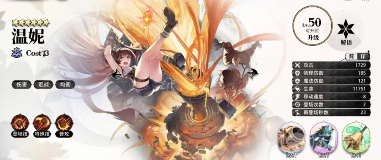 温妮是兽人,性格憨厚善良的她,会在辛勤劳作之余,无偿为兽人组织提供武器,她的普攻会对单个敌人造成66%物理伤害,她的登场技会立起锻造台,和杰克一起开始锻造,在这个期间不会受到伤害和控制,并且不可以打断,锻造好后会召唤出钢翼凤凰帮助进攻,并且此后杰克会一同流畅作战,他们两人任意一人在场时,就能让凤凰提升60%免伤率,她的“默契锤击”会跳跃到空中带动锤子旋转,并在落地后产生爆炸,对范围内敌人造成108%物理伤害,若杰克在场,则他会在相同位置选择落地,产生爆炸造成一定物理输出。