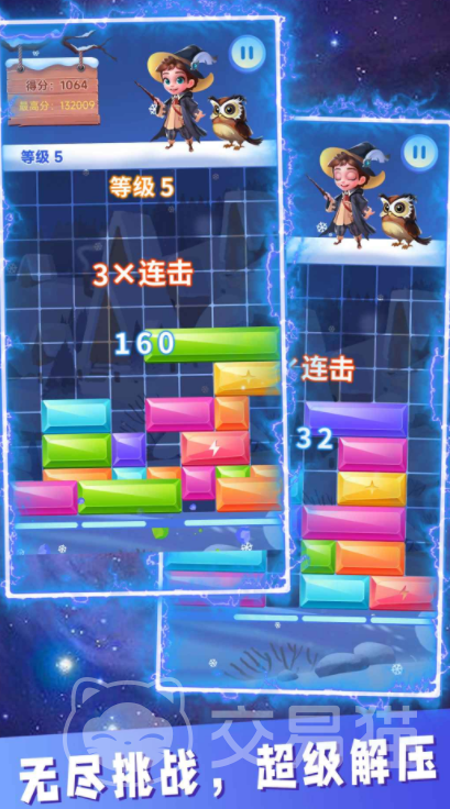 游戏设定的非常休闲解压,每个玩家都可以开启一场独特的冒险之旅,在冒险过程中会进入到不同的地图,根据地图的不同,整体场景也会发生变化,这样能让玩家有更加新颖的消除乐趣,每次移动这些方块的位置,场景都会发生变化,玩家需要时刻动脑才能完成消除要求,在很多关卡中没有分数的限定,这可以让玩家不断自行挑战,可以不断超越曾经的分数,证明自己的能力。