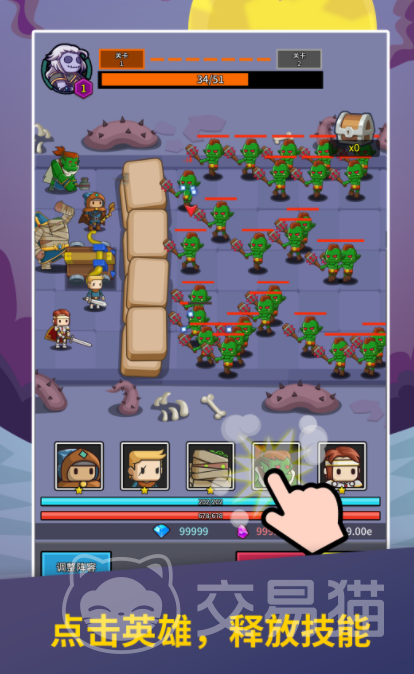 在进入到无尽守护者之后,会有大量的破坏者从右侧出现,他们会进攻玩家左侧的领地,如果不想受到这些破坏者的攻击,玩家就需要选择几名成员组成一支队伍,不断利用这些英雄的技能展开反击,同时玩家还需要在场景中放置自动射箭装置,这样一旦对手靠近之后,装置就会自动发射剑矢进行攻击,不想让这些入侵者攻破最后的防线,玩家就可以在游戏里通过点击英雄的方式,选中相应的英雄,这时候英雄就会自动释放技能,攻击这些入侵者。