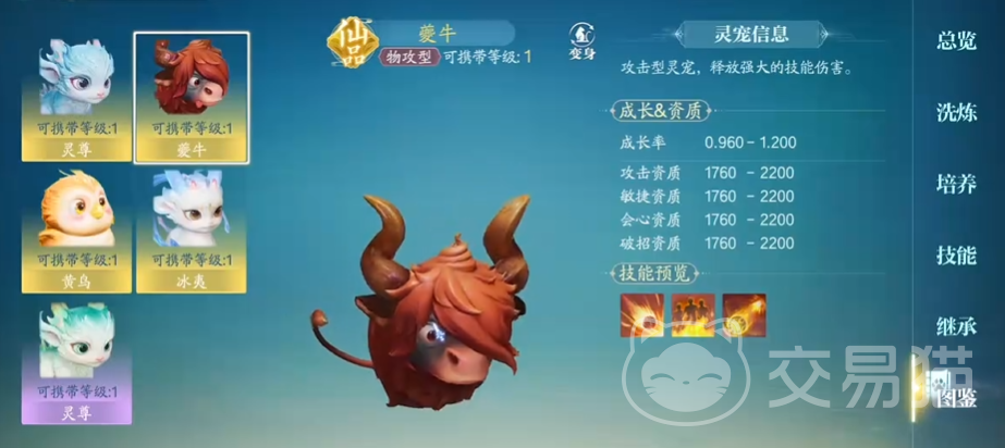 大家玩的是青云那么,那么可以尝试选择夔牛,这个宠物建议搭配物攻类型的职业,核心技能可以给敌人造成减速增伤的效果,很适合大家用于副本使用,因为青云的远程输出范围在搭配上这个宠物的减速增伤能最大化的打出伤害,还能保障自身的安全。