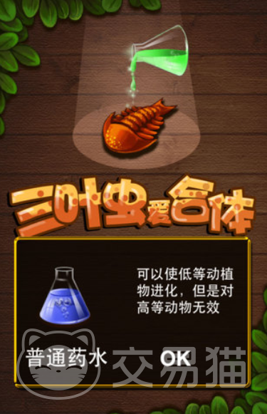 在常规的合成游戏中,都会设定一个比较唯美绚烂的场景,但是在三叶虫爱合体这个游戏里,玩家将会成为生化实验室的一名实验人员,需要从遥远的寒武纪开始,收集各种昆虫,接着通过合成以及各种神秘药水的帮助,让玩家可以得到传说中的三叶虫,除此之外,游戏里还会有很多其他的模式,玩家可以合成鸟类恐龙或者是兽类,在每一种合成玩法中,有大量的动物,都会有大量的生物,玩家需要根据这些生物的特性,不断进行合成,这样才能在对战的时候有更优秀的表现。
