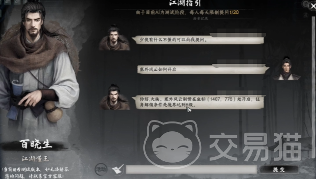 下一站江湖2塞外风云攻略的内容就介绍完了,塞外风云资料片的核心剧情脉络、特色任务与奇遇玩法已完整呈现,从势力交锋的剧情抉择到秃鹫引路的隐藏探索,每一部分都需玩家结合自身选择与探索节奏逐步推进,保持对塞外环境的好奇心与探索欲,主动尝试不同的选择路径,感受任务联动带来的剧情深度。