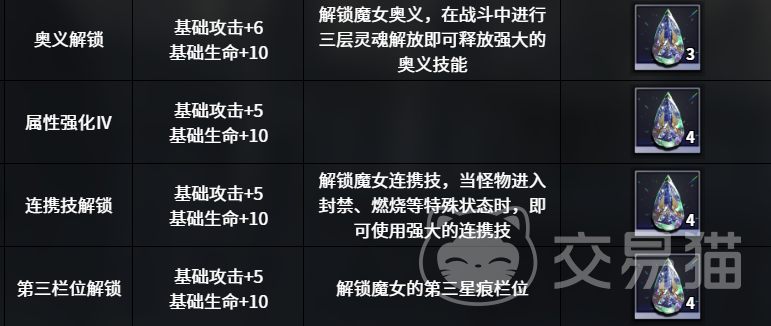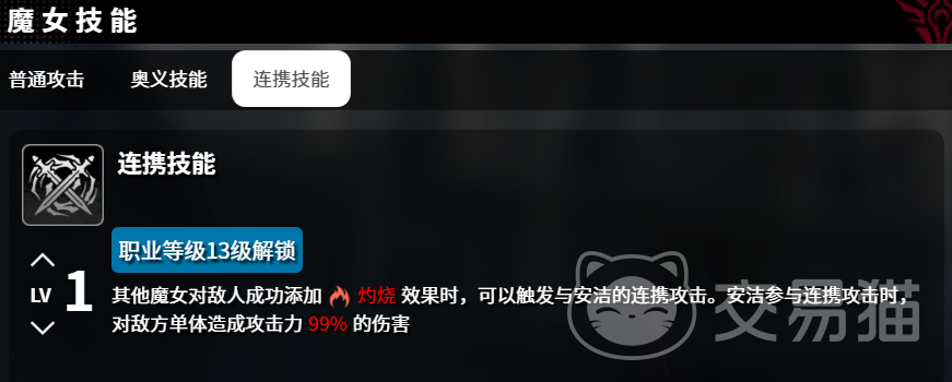 连携技的效果是一旦其他魔女成功地对敌人施加了灼烧效果,便会如同触发了某种神秘的共鸣机制一般,瞬间引发与安洁的联合攻击,此时的安洁可以迅速加入战斗序列,以凌厉的攻势对敌方单体再次造成99%的伤害,这样的配合不仅增加了战斗的观赏性,更在实战中极大地提高了输出效率,而当角色成长至15级时,安洁就解锁了她的奥义技,真理之章,使用的时候她会双手合十,本源的力量如洪流般喷涌而出,席卷所有敌人,造成高达210%的恐怖伤害。