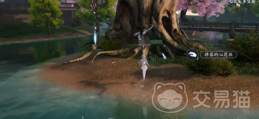 8.隐隐期许,坐标大约(19338,17431)的位置,在池塘中大树所在的位置,树下有一根肉眼看不到的许愿丝,拾取就可以完成了。