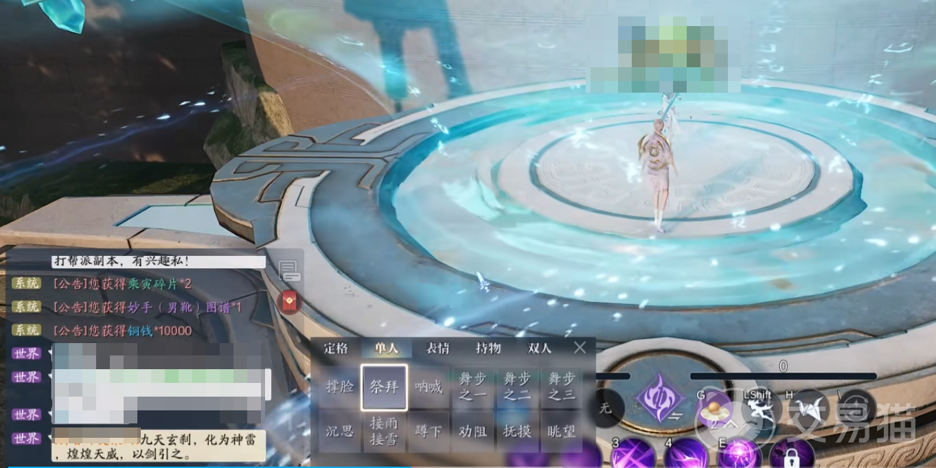 2.尊师重道,在台子的中间,向后转直接飞就可以到,坐标(16539,18360),站在最中间,打开聊天界面,找到祭拜的动作,做一下就能完成这个奇遇。