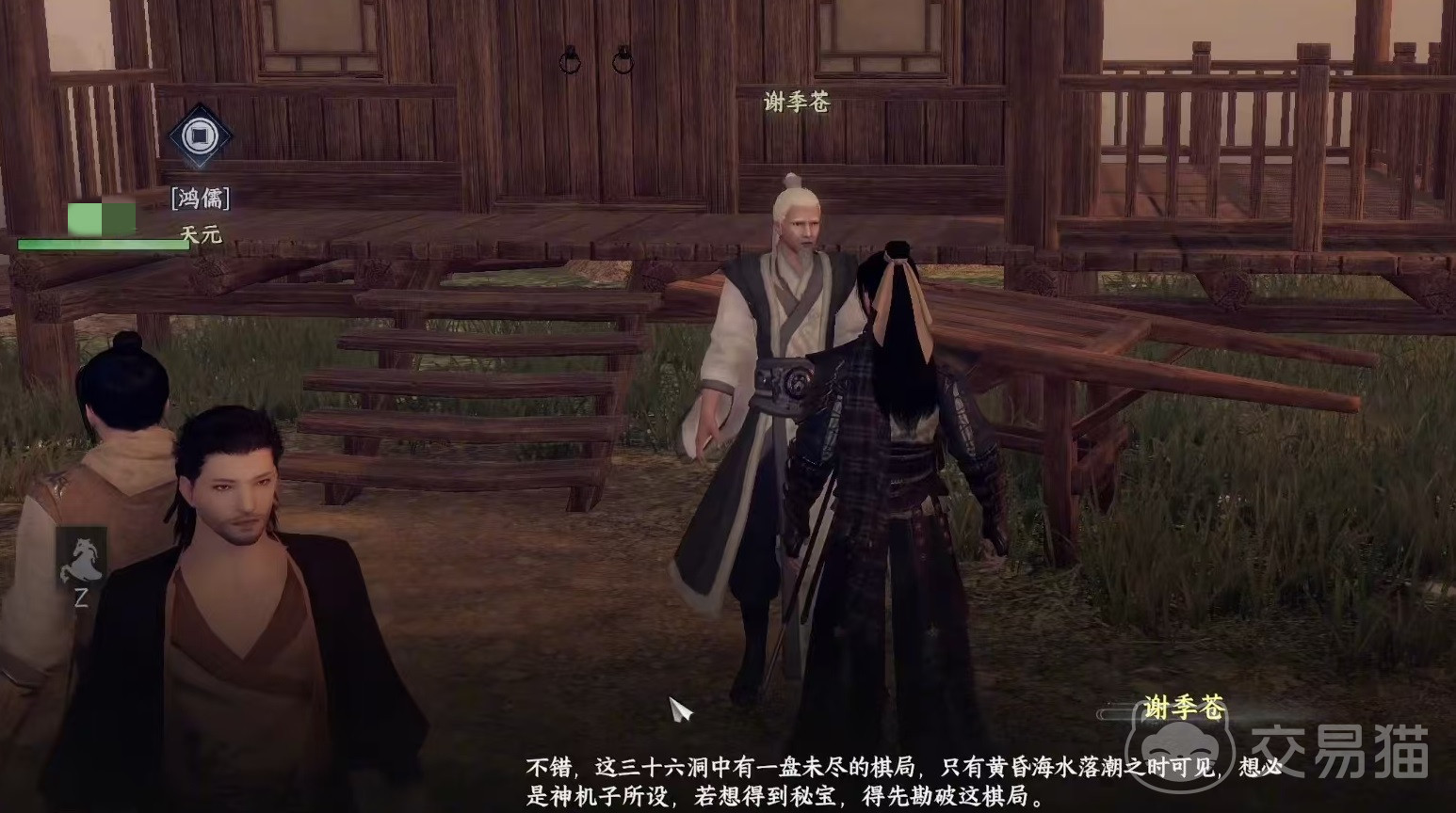 这里所说的三十六洞地宫,这就是洞天秘宝任务。首先来到地图坐标-172,529,在这个位置可以看到有两个三十六洞弟子对话,之后解锁一个线索。接下来去拿另一个线索,需要在附近找到谢季苍,对话之后他会告诉玩家一个线索,只有在黄昏海水落潮之时候,解锁棋局才能拿到秘宝。