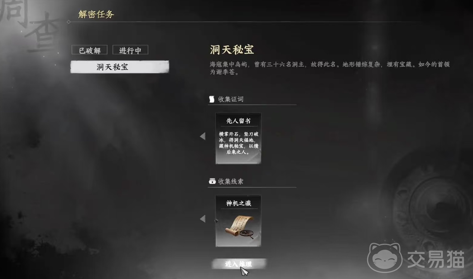 这两个线索之后就可以进入到推理阶段,这里可以随意尝试,不用担心失败,得到一个关键的消息是秘宝的位置,在某个火焰燃烧的区域,需要刚系刀法打开,还可以直接得到地宫所在的位置,就在标-95,610处。来到位置之后可以看到有一处发光的石壁,调整好刀法之后打两下就就能打开了。进入之后需要先完成棋局解谜,然后就可以探索里面的宝藏了。需要的道具之前已经全部集齐,所以探索非常简单。这里面获取的道具很多都对后续发展有着重要作用。