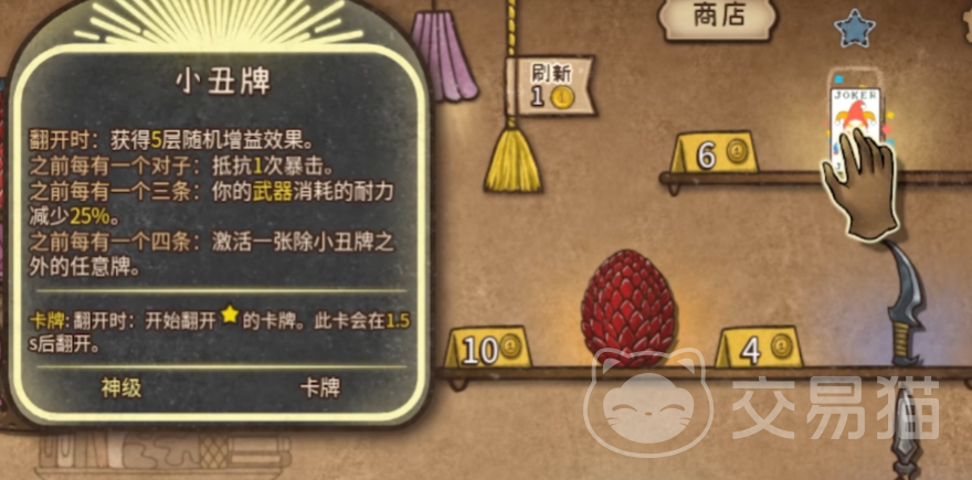 小丑牌流派同样别具一格,该流派以小丑牌和匕首为核心元素,小丑牌拥有使武器获得无限耐久度的神奇特性,基于此,可以将普通的匕首逐步升级为集毒伤、火焰伤害和雷电伤害于一体的效果,这样一来在战斗中就能持续不断地向敌人施加多种负面状态,通过挂毒、雷和火伤的方式对敌人进行持久消耗。