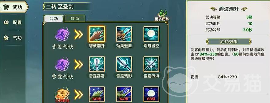 武学系统分为职业专属技能与通用气功,解锁节奏需循序渐进。主动技能随等级解锁:10级通过主线获得基础攻击技(如刀客劈砍),20级解锁群体技,30级门派贡献兑换控制技、被动气功需消耗气功点升级,每升1级获得3点,推荐优先点满狂风万破(怒气持续+2秒)和嗜血狂攻。技能升级消耗铜钱与技能书,1-5级升级成功率100%,6级后概率递减,失败不降级但消耗材料。