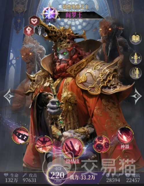 阎罗王开局就能直接拉到对方的一个人,让其进入到自己的半场当中,技能可以直接禁锢目标长达6秒的时间,被动是挨打扣除对手的能量,大招能带来2秒的眩晕,可以说是单体激活,快速斩杀对手c位最好的角色。