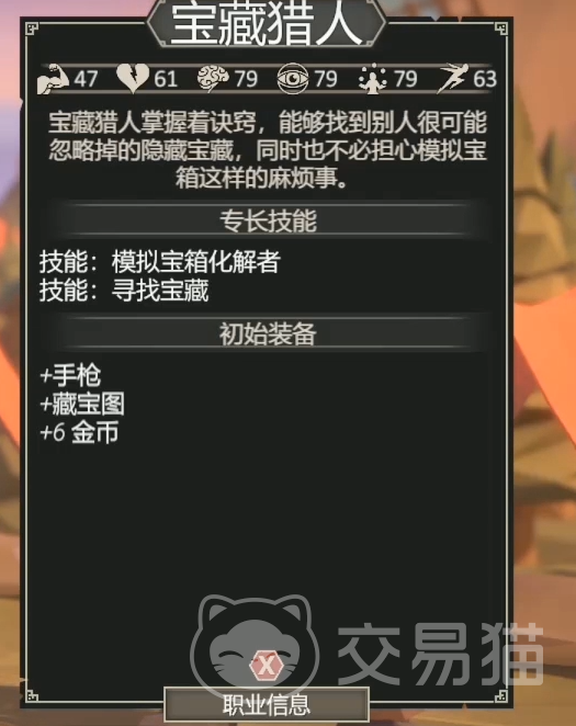 宝藏猎人这个职业的定位应该算是一种另类的资源辅助职业。他的能力就如同名字一样,以寻找宝藏为主。他可以让咱们获取金币的数量大大增加,同时还可以找到地图上的各类隐藏宝藏。