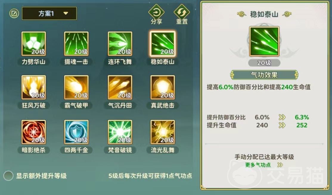 因为刀客往往是团队中可靠的前排支柱,所以最重要的是管理好加点,在有限的资源里叠加buff带来巨大提升。在一转的情况下,小编建议优先点满稳如泰山和力劈华山,这是前期必须要打好的基础。稳如泰山提升的防御和,力劈华山提升的攻击都,是前期刀客非常需要的。在二转的时候根据情况,补充上狂风万破、霸气破甲、气沉丹田以及真武绝击。狂风万破能增加怒气时间,霸气破甲附加追加伤害,气沉丹田提升的是武功防御和生命值,真武绝击能提高会心率。