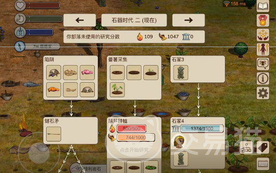 玩家还可以自行的点击,然后去选择不一样的研究方向,通过获取对应的分数,然后去完成研究。很多的玩家并不了解在石器时代到底应该如何操作,在这一个阶段玩家所需要做的,那自然就是解锁挖掘棍的制作。之后还可以继续的研究扁食类别,制作一些番薯片,这些食物就能够有效增加饱腹感。当然除了这一种食物之外,也可以制作其他的食物,这方面其实没有太多的限制性。玩家如果不知道该如何去玩,不如就看一下这一方面的内容。