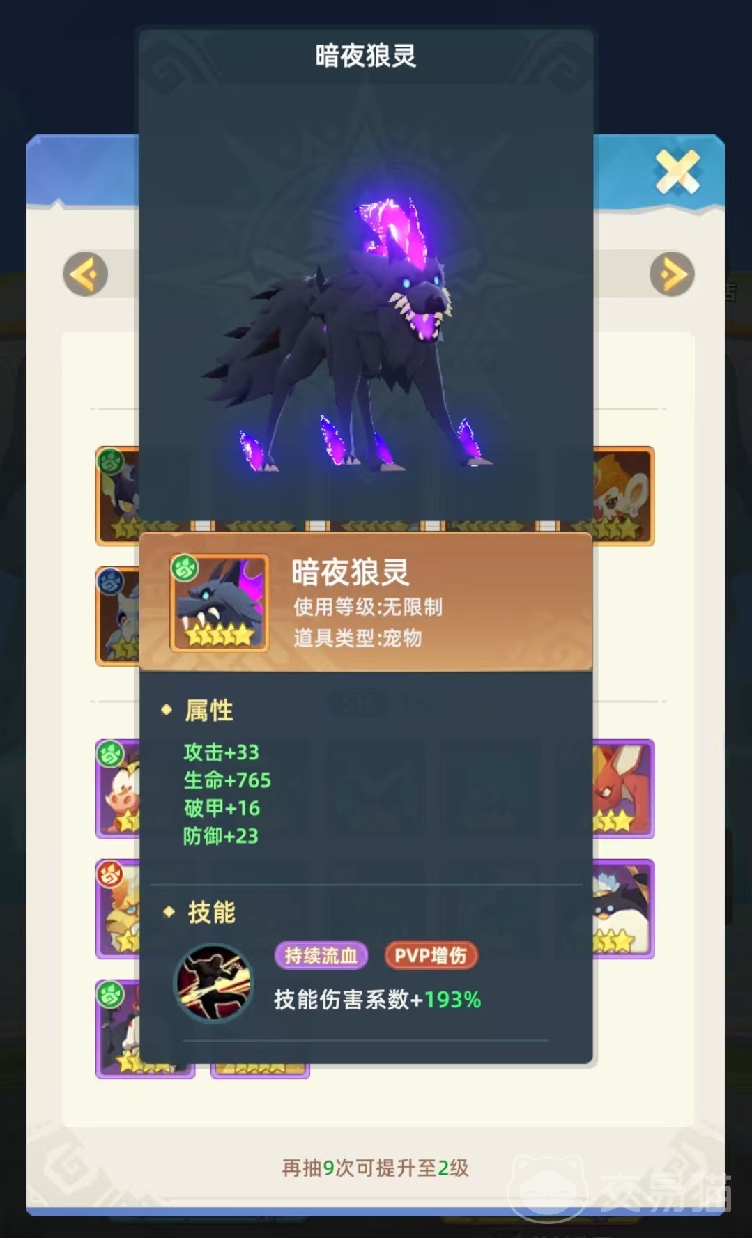 弓箭手作为远程输出,在很多时候都需要采用放风筝的形式来攻击敌人,所以小编建议大家搭配一些可以造成持续伤害或者是具有控制效果的宠物在pk中发挥优势。在前期可以配合上暗夜狼灵以及冰晶象,冰晶象的优势在于自身可以造成伤害还可以给自身添加护盾,并且清除部分减益类型的buff,这样可以利用护盾去扛伤害。暗夜狼灵的技能具有持续流血效果,会每秒钟减少固定生命值,这样方便方正时消耗对方。