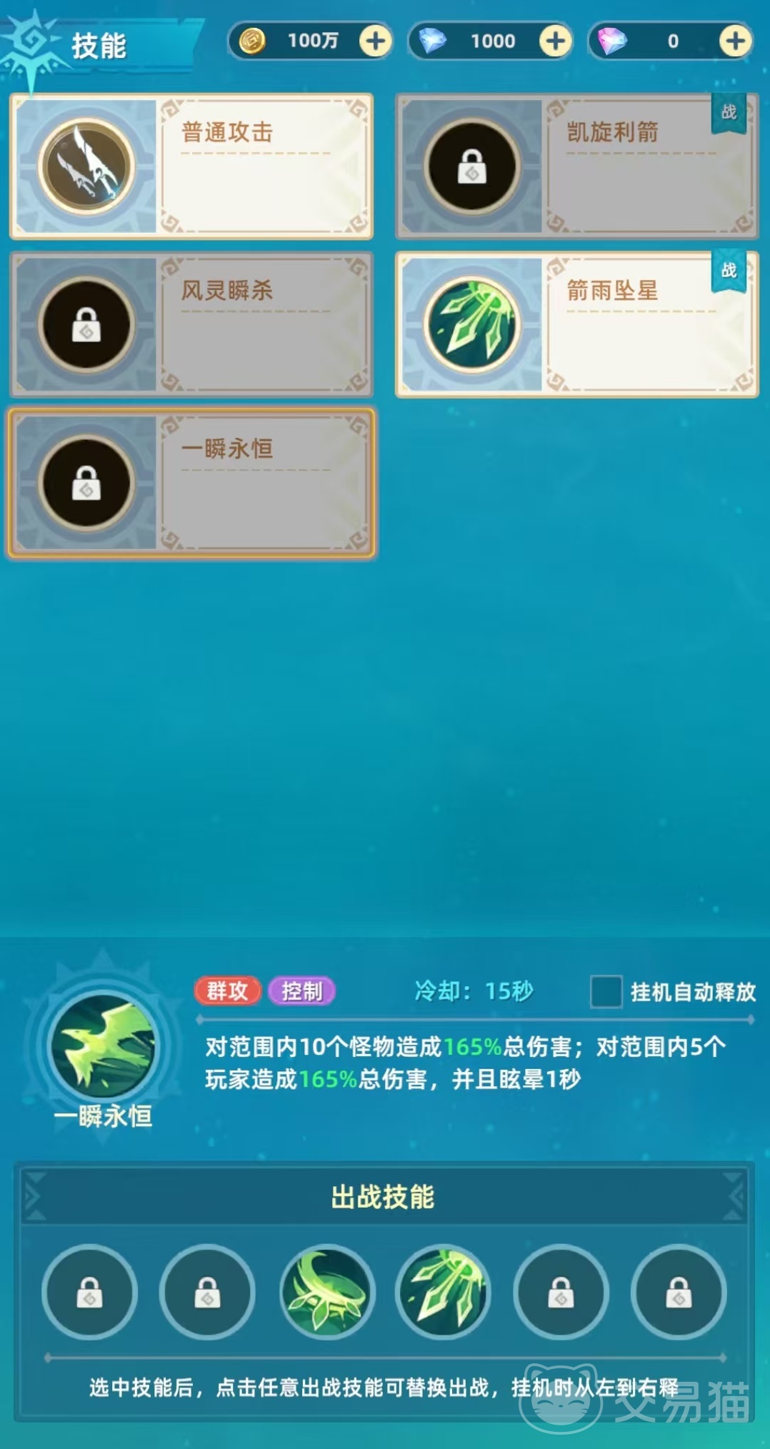 在技能方面,弓箭手一共有4个技能,分别是凯旋利箭、风灵瞬杀、箭雨追星和一瞬永恒。这几个技能都是属于群攻类型,但是伤害敌人的数量不同,例如普通攻击只能伤害2个怪物和2个玩家,凯旋利箭可以伤害范围内6个怪物以及3个玩家.风灵瞬杀能够伤害8个怪物和4个玩家,箭雨追星能够伤害最多10个怪物和5个玩家。一瞬永恒能够伤害10个怪物和5个玩家,同时能够附加一秒钟的眩晕。技能伤害数值越高,冷却时间也就越高,所以大家要把握好技能释放的顺序。