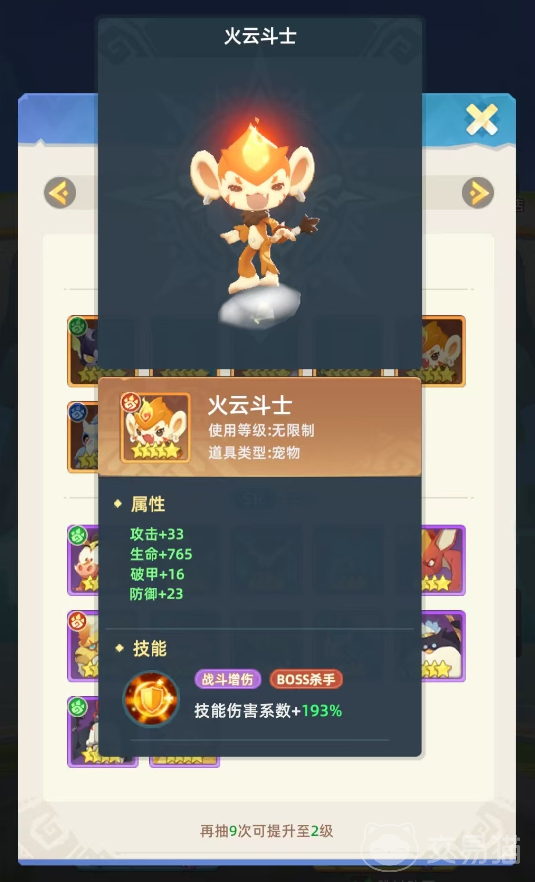 如果是走pve路线,那么可选择的就比较多了,例如前期使用火云斗士,后续火云斗士进化到火云战神之后,就是非常合适的开荒宠物。另外一个可以搭配上防御比较强的塔木木或者是泡泡狐等,这些都是在打boss时非常好用的伙伴。再搭配好之后,根据战斗需要形成不同的方案,然后随时切换就能够达到最佳效果。