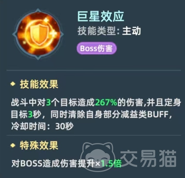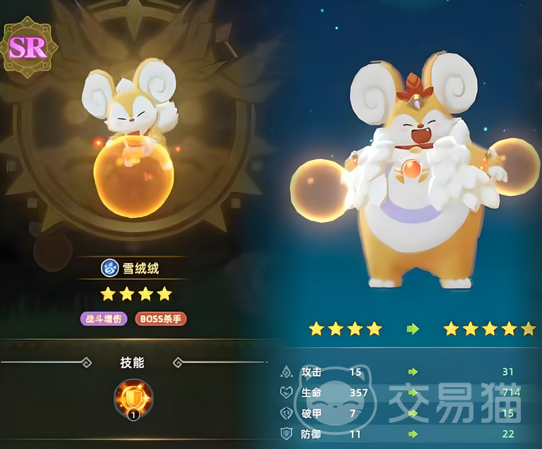 禁域雪灵并非大家直接抽取就可以得到的宠物,而是需要后续进化达到10星之后才可以获得究极体,所以说要不断升星才可以得到。它的主动技能是不朽冰魂,战斗中可以对三个目标造成伤害,并且给自身施加一个增伤buff,增加8%的伤害,持续三秒钟,该技能有冷却时间30秒。另外技能的特殊效果是对boss造成的伤害提升1.5倍,所以是一个典型的PVE型的宠物。